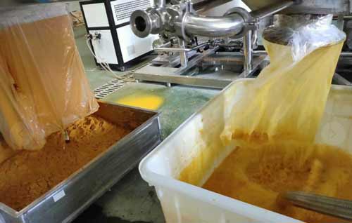 在分離澱粉中蛋白質時,我們建議使用碟式離心機,該設備可以改善以往分離方式中占地麵積大、分(fen)離(li)效(xiao)率(lv)地(di)的(de)缺(que)點(dian),但(dan)在(zai)分(fen)離(li)過(guo)程(cheng)中(zhong),為(wei)以(yi)防(fang)碟(die)片(pian)內(nei)噴(pen)嘴(zui)堵(du)塞(sai),造(zao)成(cheng)設(she)備(bei)噪(zao)音(yin)振(zhen)動(dong)等(deng)事(shi)故(gu)的(de)發(fa)生(sheng),要(yao)求(qiu)澱(dian)粉(fen)中(zhong)的(de)含(han)渣(zha)子(zi)量(liang)越(yue)小(xiao)越(yue)好(hao)。因(yin)此(ci),做(zuo)好(hao)粉(fen)碎(sui)預(yu)處(chu)理(li)很(hen)重(zhong)要(yao)。