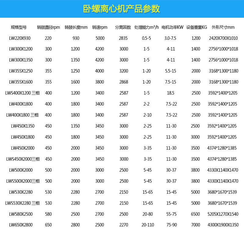 臥式螺旋沉降離心機簡稱(臥螺離心機)適用於產量大、固體顆粒大、固體含量高固體含量百分比占(5%-50%有流動性)的產品,普遍用於物料的前處理初過濾分離使用。