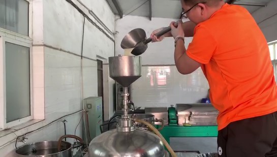 蛋白物料原液從碟片離心機進料口進料後,離心機經過高速旋轉產生的轉速差將蛋白和水分離開,自動從離心機出料口出輕液。