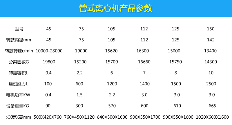 注:根據酵素處理量的不同,選擇管式離心機的型號也不同。