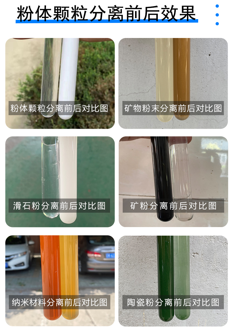 處理過的物料:納米材料、納米粉末、粉體顆粒、二氧化鈰、高嶺土、碳化矽、鎢粉、陶瓷粉、陶瓷漿料、鈦白粉、油墨、伊利石礦粉、******、銅粉、礦粉、鋅粉、金屬粉末、鋁粉、礦物粉末