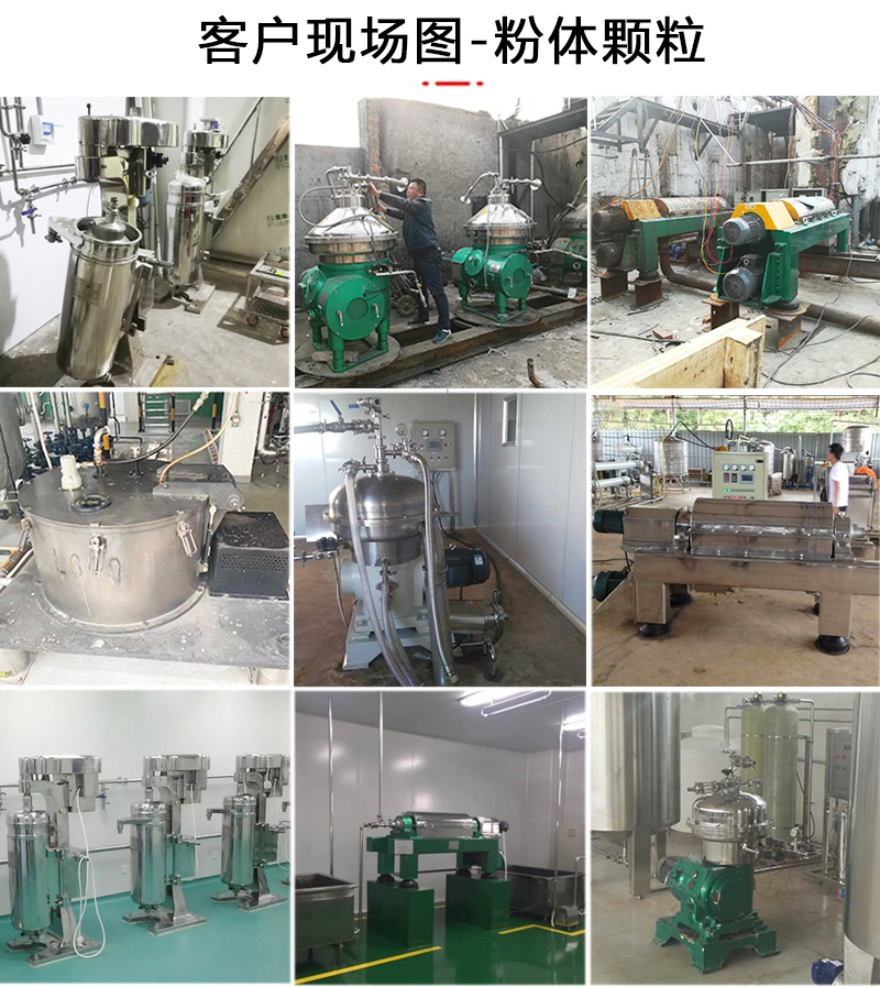 平板離心機:適用於混合液中固相顆粒較少物料分離,適合於固含量1-40%的懸浮液。