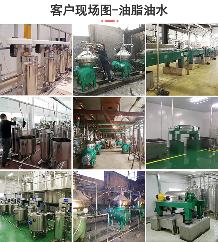 處理過的物料:動物油(雞油、豬油、牛油、羊油、魚油、鴨油、骨渣油、鴿子湯油),植物油(菜籽油、玉米油、大豆油、花生油、食用油、亞麻籽油、核桃油、椰子油、芝麻油、葵花籽油、棉籽油、花椒油、棕桐油、皂角油、橄欖油),礦物油,潤滑油(合成機油),原油,液壓油,柴油,餐廚垃圾油,煤焦油,石油,廢油,切削液,火鍋底料,火鍋紅油,甘油脫鹽,油蠟