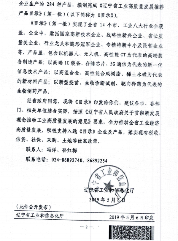 遼寧省工業高質量發展推薦產品目錄******批|遼寧富一管式分離機